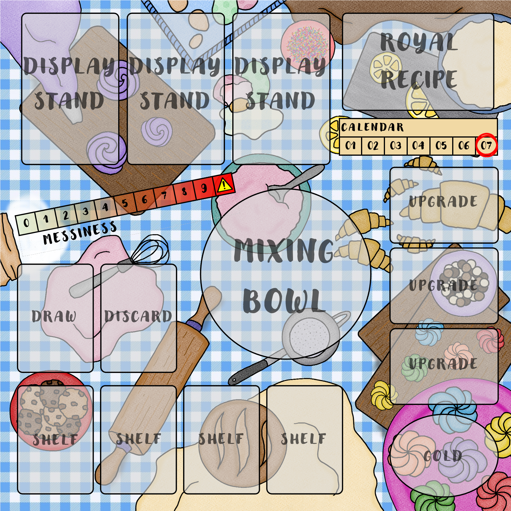 Dirty Spatula is a cooperative deckbuilding game where you and your fellow bakers try to win the honour of baking the Princess's birthday cake.